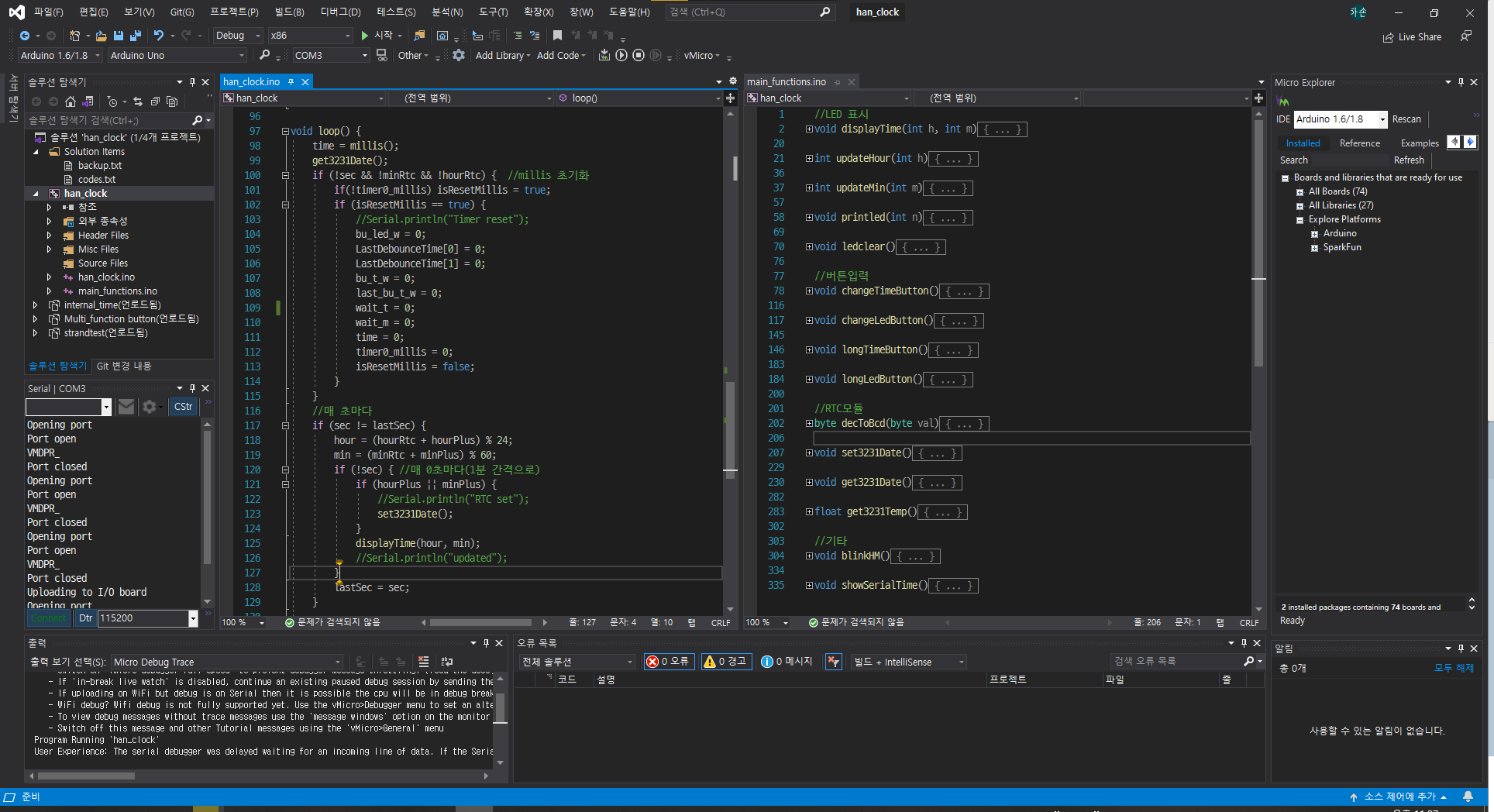 - 엎친데 덮친 격으로 RTC모듈마저 오차값이 너무 커 실사용이 불가능할 정도가 되어 내부 millis함수를 사용하여 시계를 만들기로 하였다.