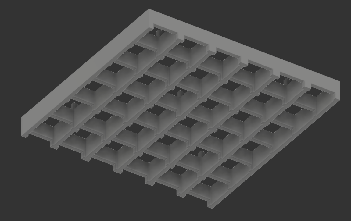 칸막이의 각각의 칸은 LED의 위치에 맞게 만들었습니다. 벽은 2T이며, 빛을 가리는 역할을 확실하게 하기 위해 검은색 PLA 필라멘트, 채움 100%로 제작했습니다.