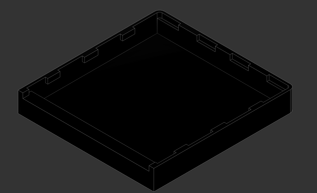 밑의 설계를 보게 되면, 가로로는 길게 튀어나와 있고, 세로로는 일정하게 들어가 있는 것을 볼 수 있는데, 이것은 네오픽셀이 지나가는 자리를 만들기 위함입니다.