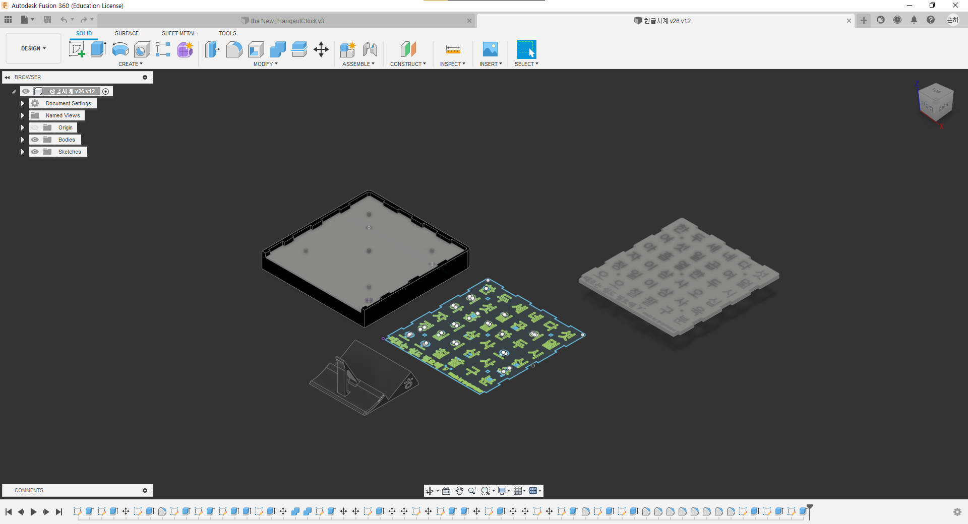 마지막으로 한글시계 받침대는 갑자기 설계한 거라 그다지 질이 좋지는 않습니다...